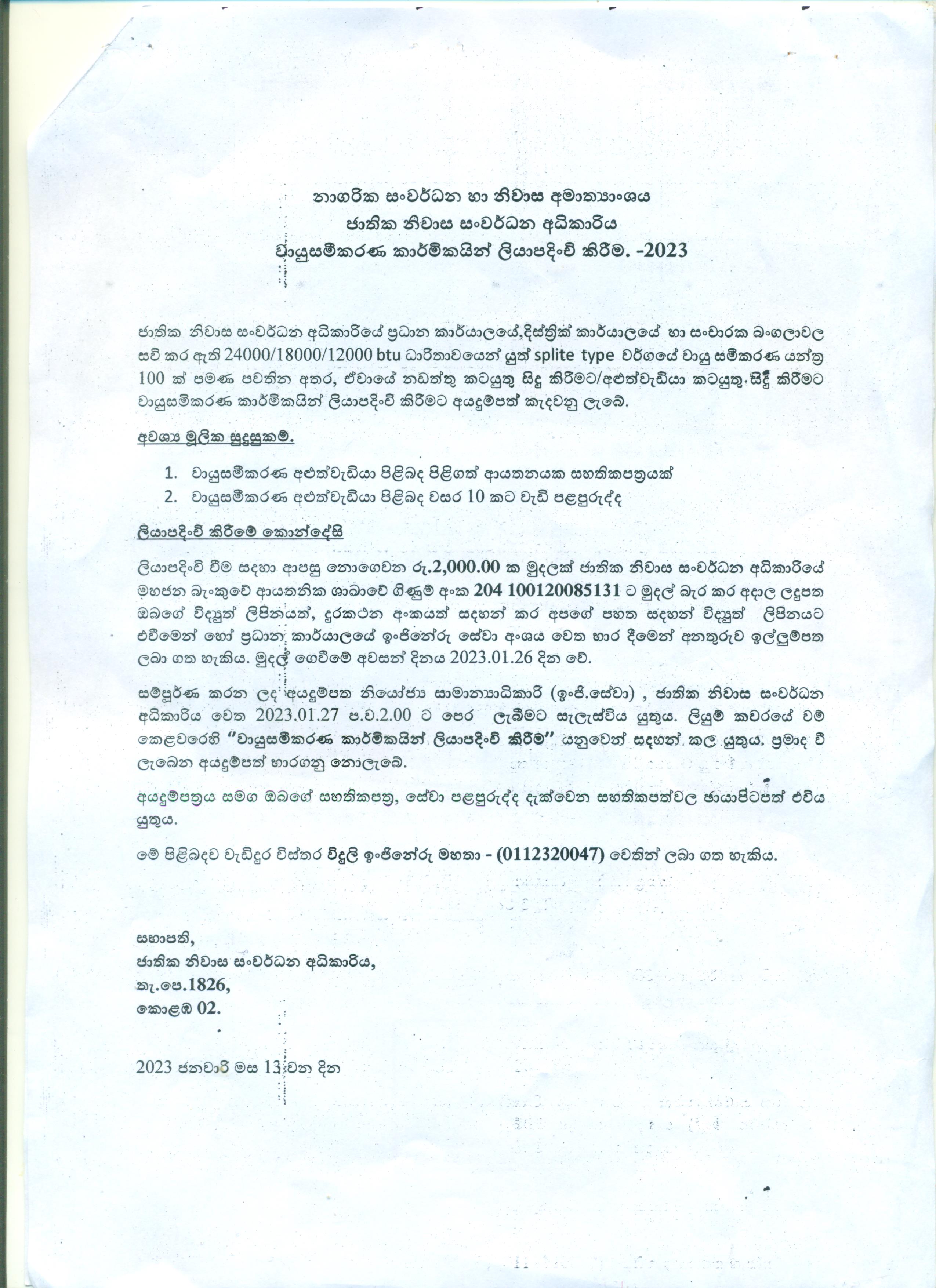 වායුසමීකරණ කාර්මිකයින් ලියාපදිංචි කිරිම -2023