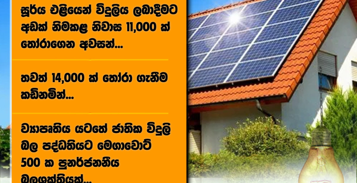 14,000 more to be selected soon...Under the project, 500 megawatts of renewable energy will be provided to the national grid...The National Housing Development Authority says that 11,000 half-completed houses have been selected for electricity supply under the solar electricity project. These 11,000 houses have been selected from 15 projects implemented by the authority. These projects were implemented between 2015-2019. Cabinet approval was received for the project of providing electricity